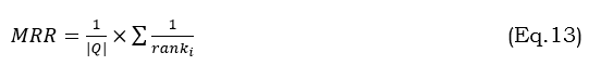Mean Reciprocal Rank (MRR) is an evaluation metric for information retrieval and question-answering tasks. It considers the average inverse ranks of the right responses throughout a collection of questions or queries. In VQA, a model typically generates a ranked list of potential answers for each question-image pair. MRR helps evaluate how well the model ranks the correct answer among these candidates. It is obtained from the equation 13.