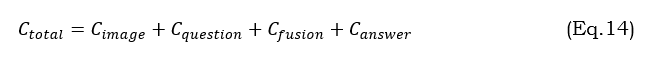 where C_image is the cost of image processing, C_question is the cost of question processing, C_fusion is the cost of multimodal fusion and C_answer is the cost of answer generation/classification.