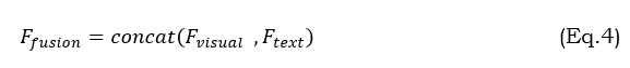where F_fusion is the fused feature representation. F_visual ,F_text are obtained from equations 1 and 3.