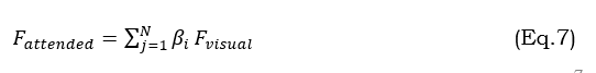 The attention weights are then used to compute a weighted sum of the visual features as in equation 7.