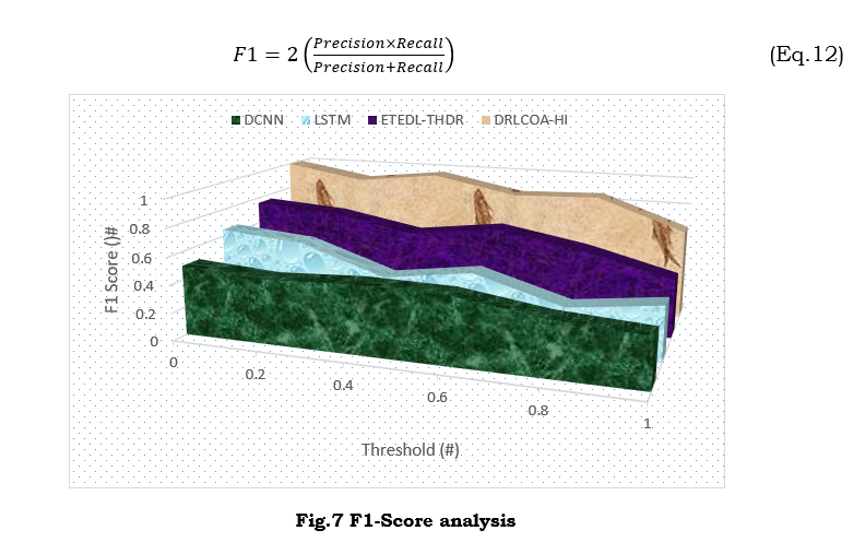 Figure 7 illustrates the F1-Score analysis among acupoint localization methods: Apriori Algorithm, RGB-D CNN, YOLO X, and ALDAU-Net. Since the F1-Score integrates precision and recall, this proves that ALDAU-Net was superior to all the other methods with the highest score. Indeed, this superior performance suggests that ALDAU-Net is more reliable in the location of acupoints with high accuracy, balancing both precision and recall even in challenging image variations caused by noise, hand orientation, or lighting conditions. This figure underlines the robustness of ALDAU-Net in clinical settings.