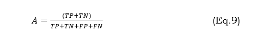 Accuracy measures the number of acupoints (both positive and negative) that were accurately recognized as a percentage of all predictions. It reveals the model's aptitude for differentiating between acupoint and non-acupoint areas. It can be achieved by equation 9.