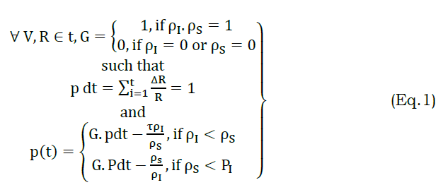Therefore additional requirement for the “t” is not mandatory, pursuing the ⨅G−G . This ensures no additional control data between V′s and I′s. The second validation is the state identification defined through equation (7). The ΔRR maximization is required for ρI=0 or 1 without increasing the adversary impact. In equation (8) the transaction validation is performed for balancing multiple ΔR constraints, reducing false rate. The v is revoked from the communication provided τ≠0 and t