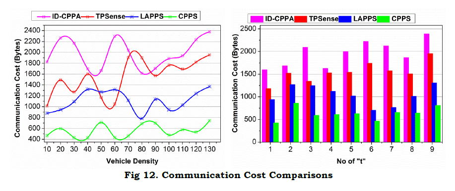 This section analyzes the proposed scheme’s performance using comparative analysis. The experiment is modeled using vehicular SIM considering 130 vehicles distributed in a highway with 3 intersections. A vehicle is allocated a maximum of 9 instances, for service sharing augmentation. Three vehicle states and 50 transactions are considered for identifying the performance for access time, adversary impact, response time, service endurance, and communication cost. The methods ID-CPPA [18], TPSense [24], and LAPPS [27] are accounted for the comparative analysis from the related works section.