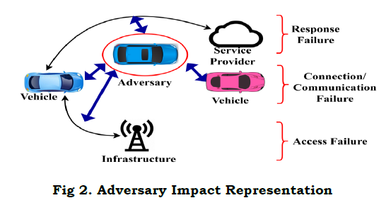 A man-in-the middle intruder causes response, communication, connectivity and access failures. It depends on the position and density of the adversary in an ITS scenario. The proposed scheme has to confront the aforementioned issues, without degrading the communication performance.