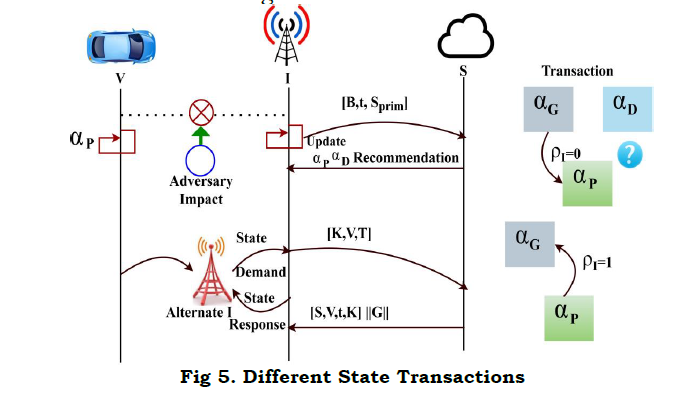The chance that leads to modification in different t is evaluated using equation (3) and (7). In equation (7), Ŝ is not accounted as the service level is unknown (unavailable) in αPstate. The process for different state transaction based on V to S communication is illustrated in Figure 5.