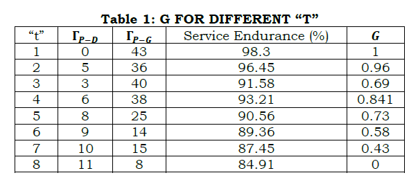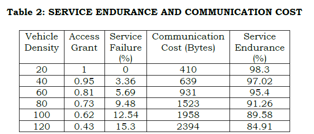 The G observed at an average for different “t” is presented in Table 1. This is based on ⨅P−D observed in different states available. The service endurance is maximized if ⨅P−G is high provided ρs.ρI=1 and the constraint in equation (8) is satisfied. Contrarily, the G requires ⨅P−D and Ŝ for providing flaw less disseminations. The above factors reduce the adversary impacts, containing multiple non-feasible factors in “t”. Table 2 presents the service endurance and communication cost for different vehicle density