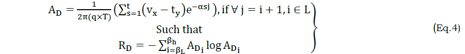 Where, e is the error occurrence at the multi-input management processing, α is the point lies on the normal plane, βh and βL are the high and low frequency rate of AD observed. The log recognition of AD and RD for the f(T) is estimated as