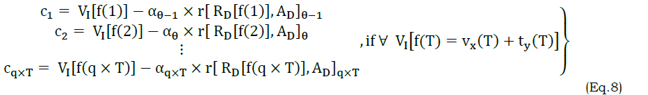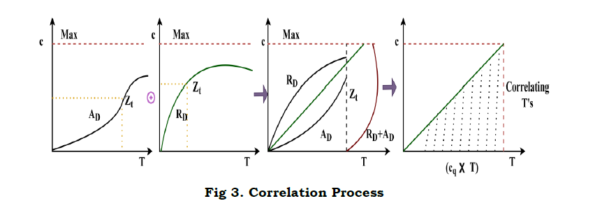 In the correlation process, the maximization is focused for the reference inputs in different T. The correlation in cq×T is achieved for non-overlapping RD and AD such that the joint interference are augmented for VI. Therefore, VI[f(T)] is considered as the performance of T in improving processing rate (Figure 3). This is ensured for a time interval and then the first reference is changed periodically based on the high processing rate and then further classifications are performed. Here, the first reference output for VI[f(T)]≠vx(T) is given as