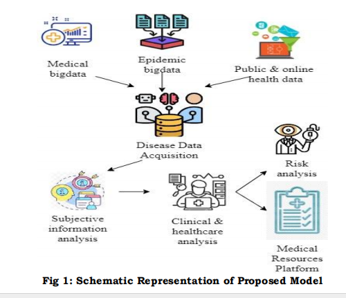 The module automates data collection, organizing, analyzing, and graphing, creating a comprehensive data repository for pandemic details like infectious disease transmission. This streamlines gathering data, relationships between healthcare, and dissemination, improving the health of the public knowledge rapidity and credibility of disease prediction. The subjective element of the proposed model analyzes the information demands of many stakeholders, including government, healthcare organizations, businesses, the news media, and the general population, during an outbreak of an illness. The authorities require worldwide data and information. Healthcare providers require resources from the network, knowledge of the prevention of epidemics, individual medical information, and illness diagnosis reference databases. Businesses need an organizational collection of data that accurately reflects the general public's views, actions, and motives. Media demands encompass information sources, validity, and timeliness. Public needs include understanding risk and healthcare facility. The application model examines big data technology applications during the earlier prevention and recovery phase of modern outbreaks. During the initial preserving phase, the essential functions related to pandemic impact management and precise information diffusion. During pandemics, big data's critical applications include tracing and anticipating transmission paths, following infected individuals, screening close contacts, and conducting intelligent medical and medication research. During recovery, the essential applications include assisting businesses in resuming operations, fostering government-public relations, and optimizing control plans for epidemics.