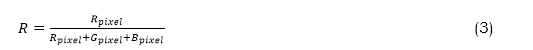 The variable R shows the normalized redness value of the pixel, ranging from 0 to 1. The parameter R_pixel represents the intensity of the red component of a specific pixel in the frame cropped and aligned from a video clip. The parameter G_pixel represents the intensity of the green component of the same pixel, whereas B_pixel indicates the intensity of the blue component of the same pixel. A higher value represents a more substantial presence of red that may correlate with anger.