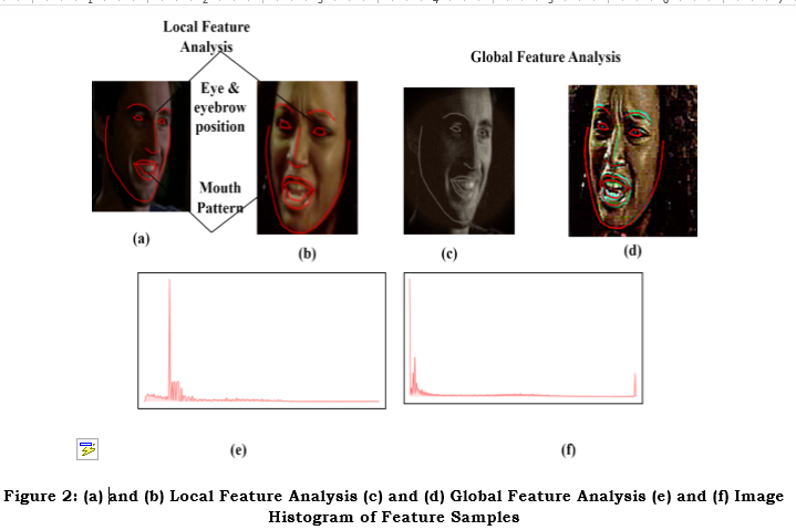 Global Feature Analysis, Local Feature Analysis, Facial Expression Identification, Feature Extraction, Video Analysis.