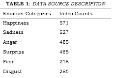 The dataset observed from [21] contains video samples. Each ZIP file contains 50 annotated videos with highly accurate per-frame annotations and varying levels of valence and arousal based on per-frame annotations. This includes 68 facial landmarks with 600 challenging video clips. This dataset contains approximately 1809 videos of facial expressions, including videos of individuals expressing six basic emotions listed in Table 1: happiness, sadness, anger, surprise, fear, and disgust.