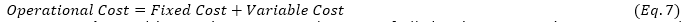 a. Operational cost: This statistic captures all operational expenses over a certain time frame, given in eqn 7.