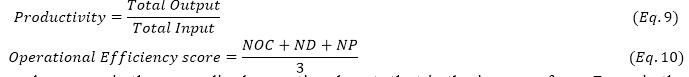 c. Productivity: The ratio of output to input is quantified by this metric. It is calculated in the eqn 9.
