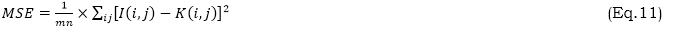 where mn are the image dimensions, I(i,j) refers to the initial picture and K(i,j) is the compressed image..