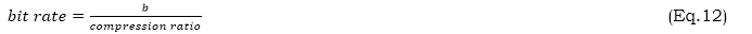 The efficiency of the compression algorithm is also dependent on the bit rate. Less data transfer is required, which means compression is more efficient. Equation (12) is used to get the bit rate.