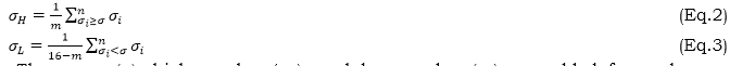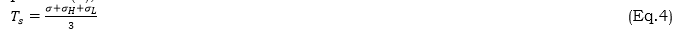 The mean (σ), higher value (σ_H), and lower value (σ_L) are added for each non-overlapping block, and the result is divided by 3. This is the threshold value (T_s). In equation (4), it is stated as:
