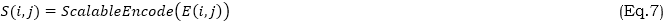 S(i,j) denotes the data that can be scaled up or down. The encrypted pixel value is represented by E(i,j), and the scalable coding function is ScalableEncode().
