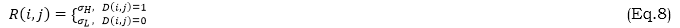 The quantizers of MAMBTC are the values of the upper and lower ranges for each non-overlapping block. Equation (2) provides the formula for determining the higher range (σ_H), which is the number that is either larger or equal to the block's mean (σ). To determine the lower range (σ_L), we use gray-level values less than the block's mean value (σ), as provided by equation (3), written in scalar form.
