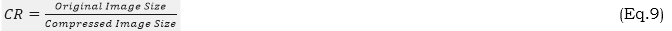 where CR is the compression ratio. The original and the compressed images are expressed in bits or bytes. Greater compression efficiency is indicated by higher ratios